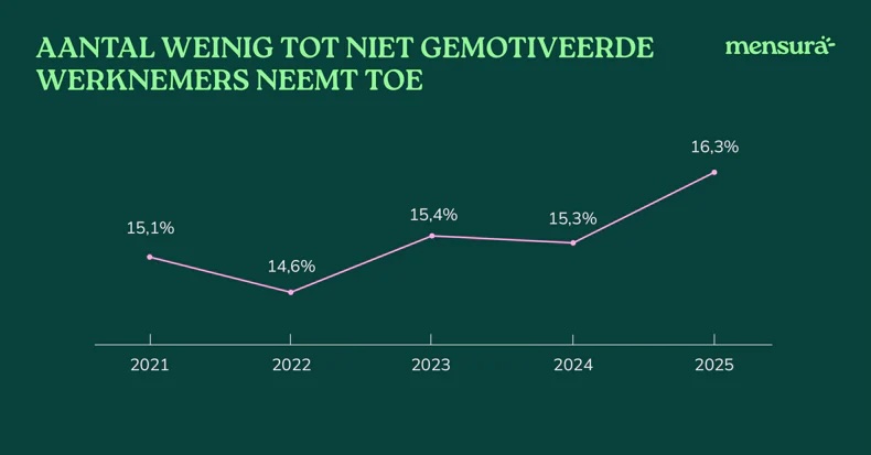 Meer dan één op de zes werknemers in ons land (16,3%) geeft aan zich niet of nauwelijks gemotiveerd te voelen om hun job uit te voeren. Dat is een stijging van zo’n 6% in vergelijking met drie jaar geleden. Dat steeds meer mensen zich niet gemotiveerd voelen op de werkvloer is opmerkelijk na enkele jaren van stabiliteit sinds corona. Lezen